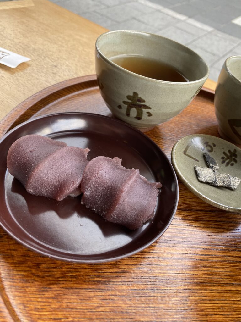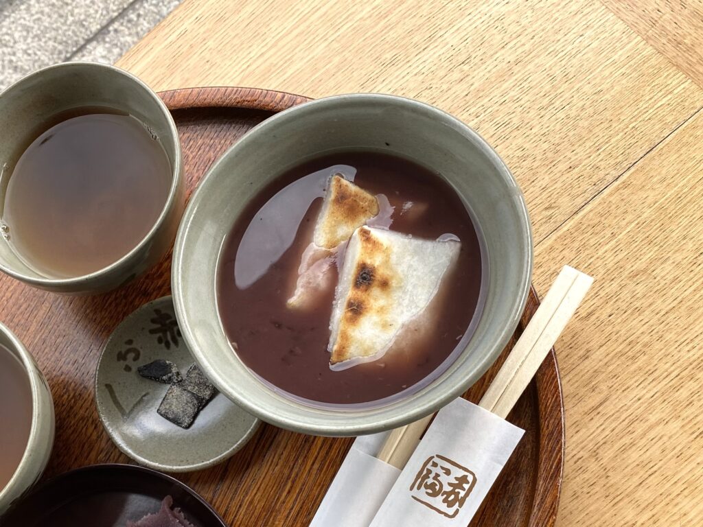 赤福本店に、ぜんざいのイートインメニューはありませんが、本店別店舗の向かい側にあり、名物の赤福餅を、五十鈴川を眺めながらいただくことができます。