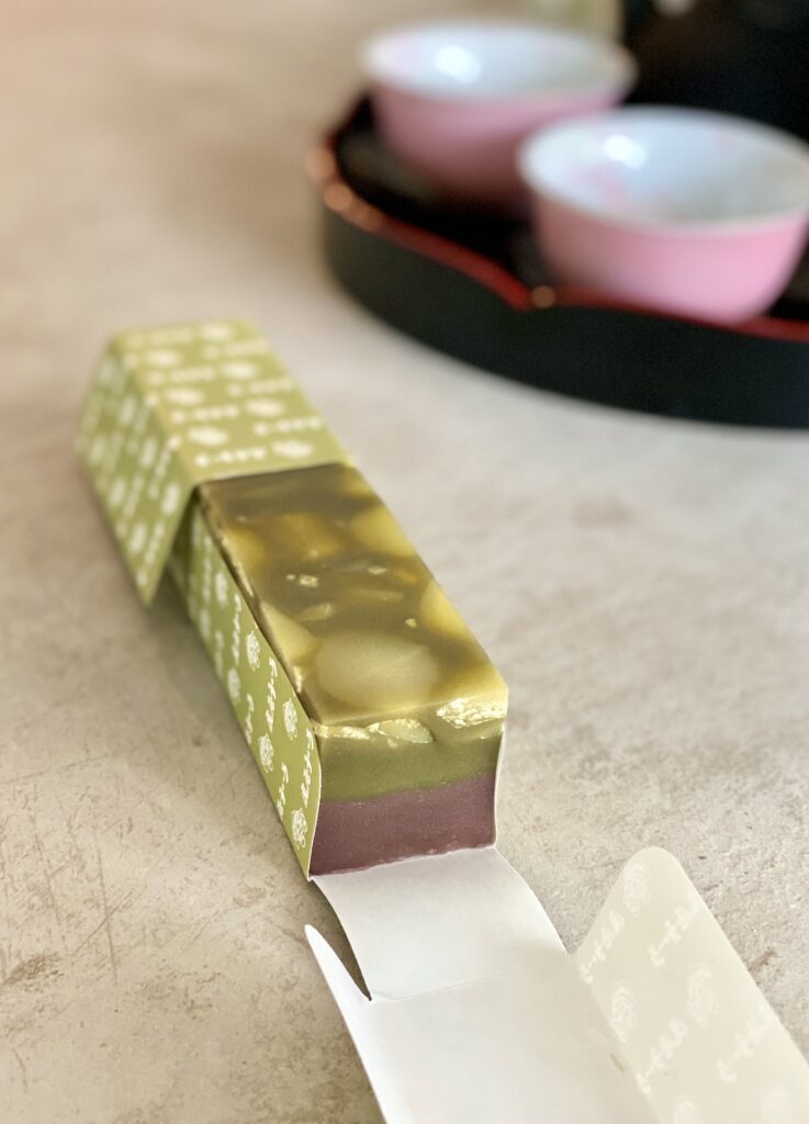 抹茶の苦みとういろの甘さ、断面の美しさまで楽しめるういろです。