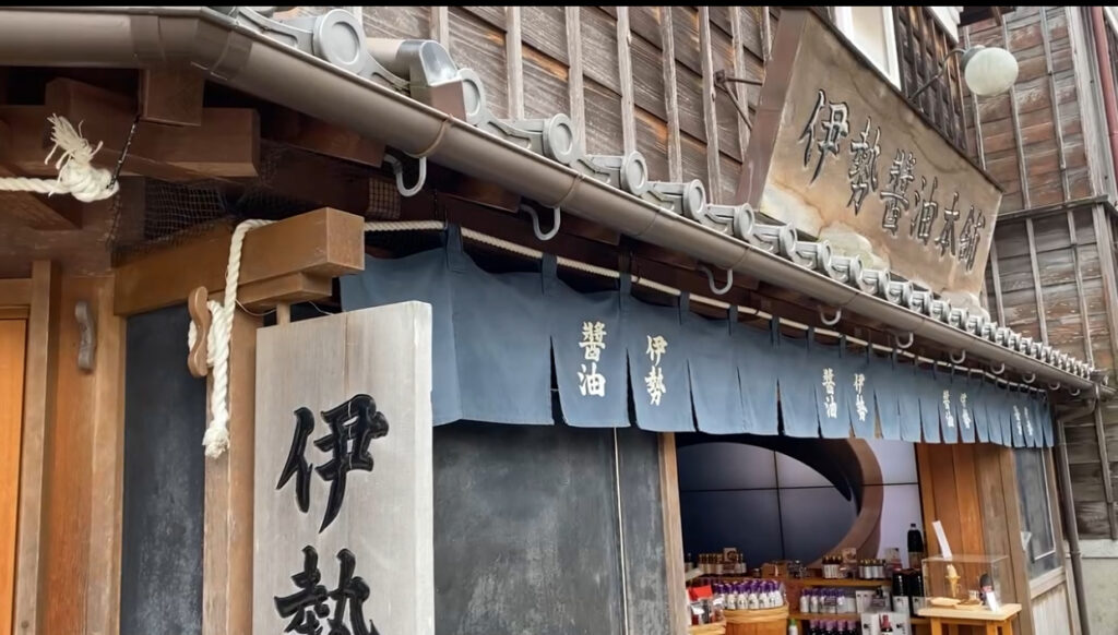 おかげ横丁の奥まった場所にある伊勢醤油本舗。伊勢醤油とタレ付きのうどんなどが販売されています。
