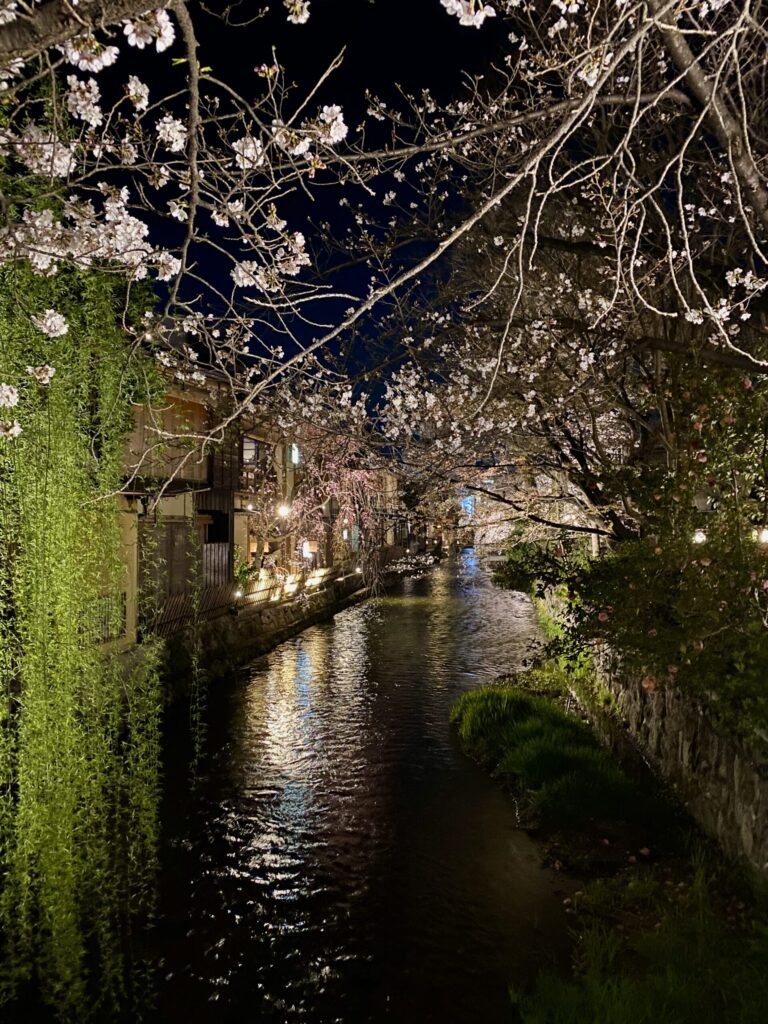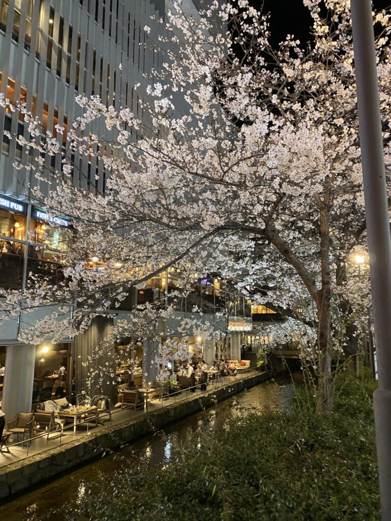 木屋町通(高瀬川)|水辺と街灯が映す、夜も美しい桜並木