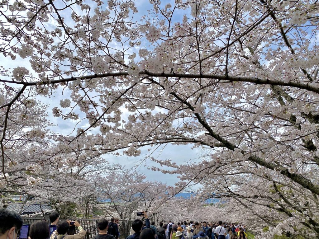 線路沿いに続く桜並木は、京都屈指の人気スポットです。