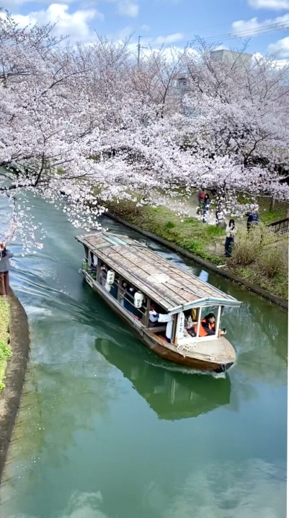 疎水沿いの遊歩道を歩いたり、予約して舟に乗れば、桜並木と穏やかに流れる水がつくる風景を間近に楽しめます。